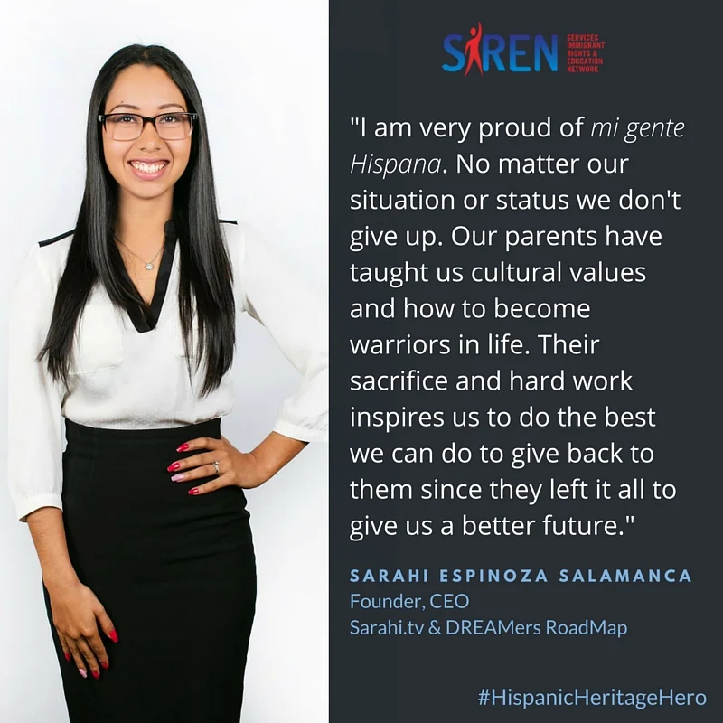 Sarahi Espinoza Salamanca is the founder and CEO of Sarahi.tv, a blog to help undocumented and low income students find scholarship and networking opportunities. Earlier this year, she was also a winner of the Voto Latino Innovators Challenge with her Dreamers Roadmap mobile app which also helps undocumented students find scholarships, and in 2014 Sarahi was a Deferred Action for Childhood Arrivals (DACA) White House Champions of Change recipient, honored for her exemplary leadership in her community.
